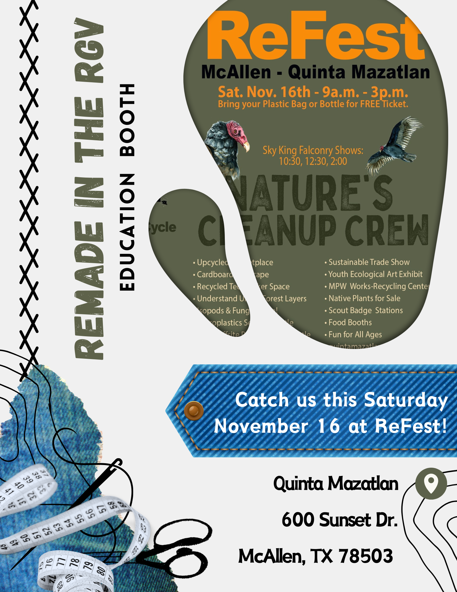 Follow along as 7 creatives around the Rio Grande Valley (RGV) create new, experimental clothing out of repurposed textiles at our Instagram @remadergv